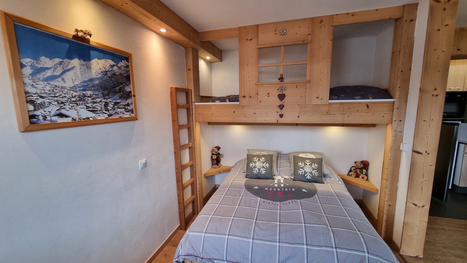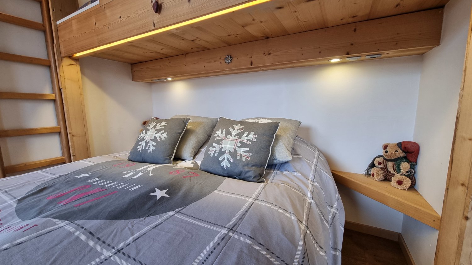 – COIN COUCHAGE : avec 1 lit de 140×190 avec une couette 200*200 + 1 couverture, 1 lit de 80×200 en superposé avec un couette 200*90, 6 oreillers 65*65 fenêtre sud-est donnant sur balcon.