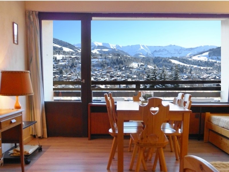 Le logement de 35m² dispose d’une pièce de vie très agréable et lumineuse grâce à sa grande baie vitrée qui offre une vue imprenable sur Megève. Dans cette pièce spacieuse, il y a 2 couchages doubles pour 4 personnes (lits – canapés/lits). Le logement est équipé également de deux couchages complémentaires en lits superposés. (A noter : Le couchage en hauteur ne convient pas à des enfants de moins de 6 ans. Décret N° 95.949 du 25/08/1995). Le coin cuisine est séparée de la pièce de vie. Les WC sont indépendant.