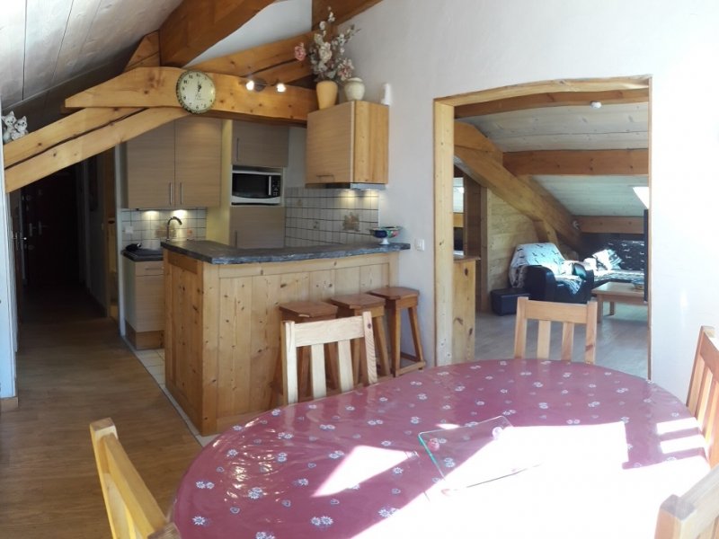 Pied des pistes, remontées mécaniques, poste, moniteurs, mairie, garderie, alimentation, boulangerie, cinéma, banque, en conclusion une situation idéale, en plus un appartement spacieux de + de 100 m² sous les toits.