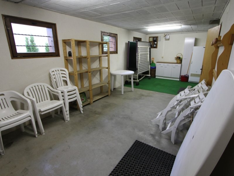 REZ DE CHAUSSEE Garage pour une voiture, table de ping-pong, meuble de rangement.