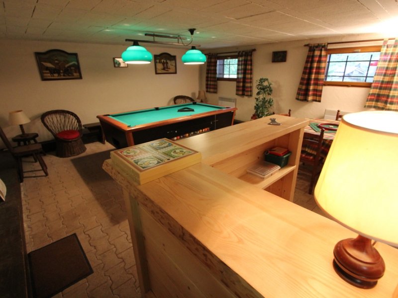1/2 NIVEAU INFERIEIUR : Salle détente Coin Bar, billard américain salle avec jeux pour enfants et adultes. Petites fenêtres Sud, Porte accès cave.