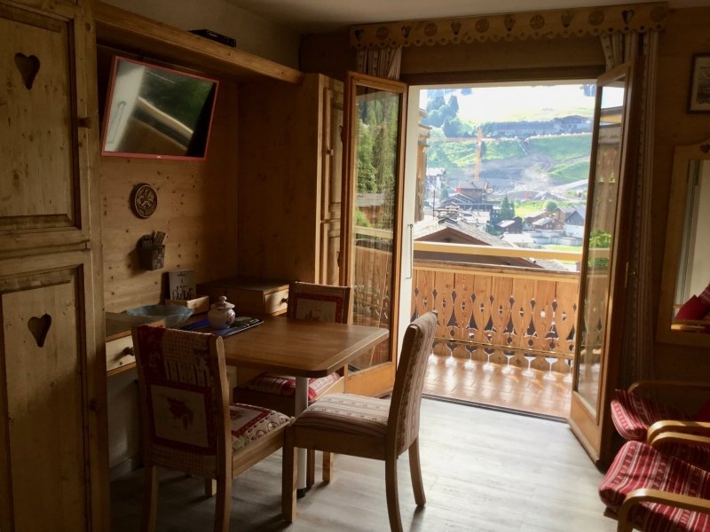 Mignon studio de 22m2 avec balcon et vue sur le village et la chaine des Aravis. Idéal pour un couple pour des vacances au calme.