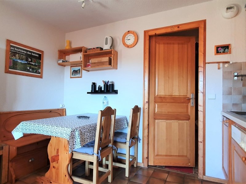 Bel Appartement, style montagnard, de 2 pièces, 27 m², situé au 1er étage (8 marches seulement), plein sud, sans vis à vis, vue panoramique sur les montagnes, au calme, balcon plein sud.