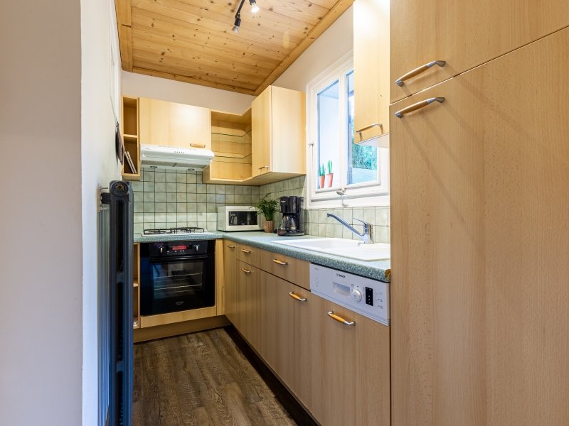* Une petite cuisine: 2 feux gaz, 2 plaques électriques, four électrique, lave-vaisselle, réfrigérateur, micro ondes, cafetière électrique, grille pain… Exposition Est donnant sur une terrasse privée.