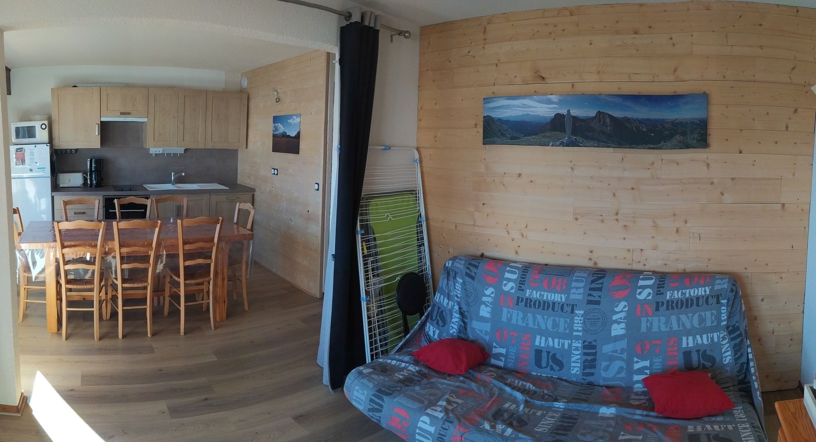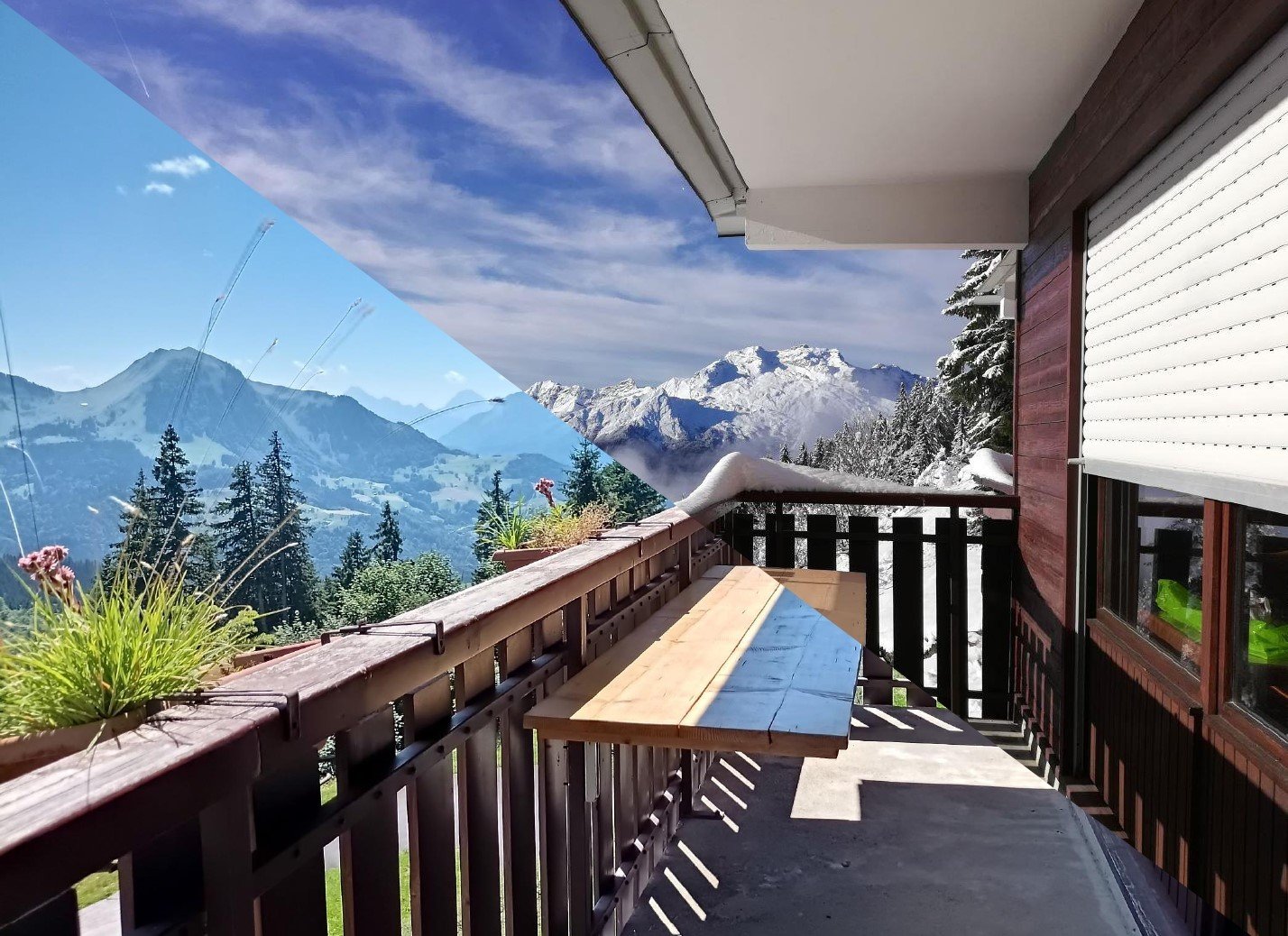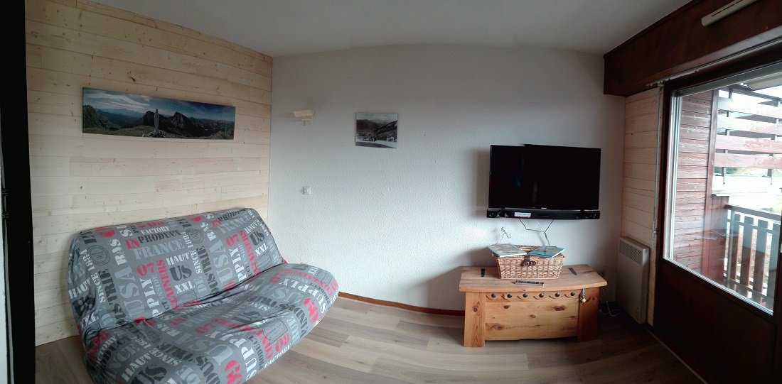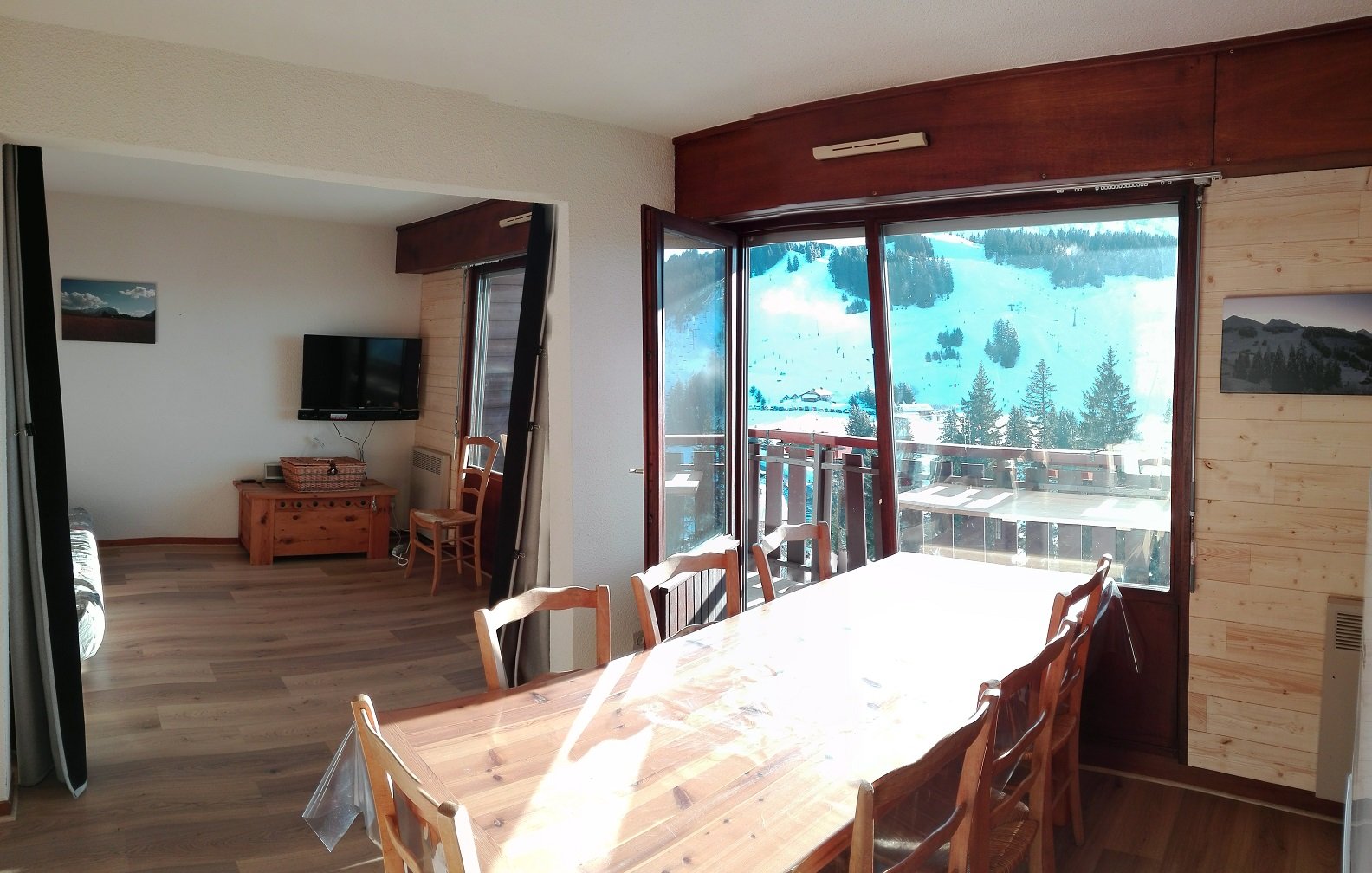 Appartement tout confort de 43m2 + balcon de 8m2 exposé sud/est au col de la Croix Fry au rez de chaussé. 8 couchages mais idéal pour 6 personnes.