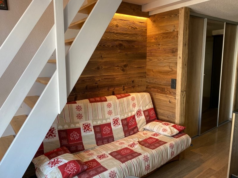 Équipements : Dans la chambre : 1 lit double en 140×190, la mezzanine : 2 lits simples de 90×190, le salon : 1 canapé convertible 2 places (les couchages sont récents), four micro-ondes/Grill, 2 télévisions (Réception numérique), service à raclette, chauffage électrique, sèche serviette, baignoire, un casier à ski dans le hall d’entrée de la résidence et un parking. Les couvertures, couettes et housses de couette sont sur place seuls les draps et taies d’oreillers sont à prévoir.