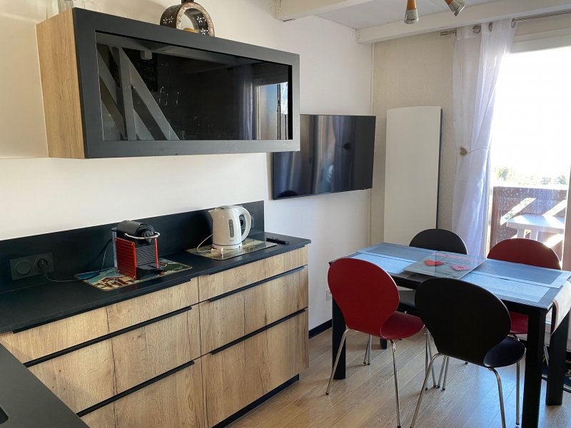 L’appartement est équipé d’un coin nuit à l’étage comprenant une chambre avec 1 lit double, une armoire avec de nombreux rangements et d’une mezzanine avec 2 lits simples. Dans l’entrée une grande penderie, un séjour de 15 m2, un coin cuisine, 1 chambre, une mezzanine, une salle de bains, un WC indépendant, un balcon.