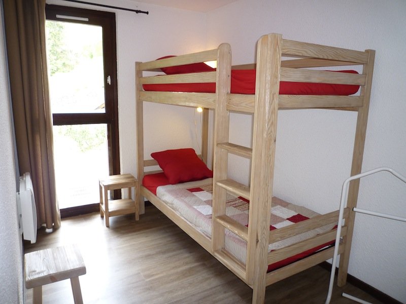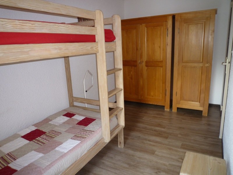 – CHAMBRE avec 2 lits superposés de 80 x 190, une armoire penderie, une bonnetière, une fenêtre.