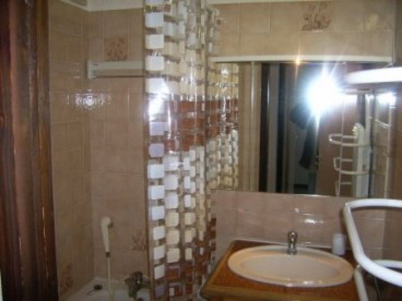 – SALLE DE BAIN avec baignoire, lavabo, armoire de toilette, radiateur sèche serviettes.