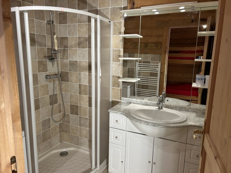 – Salle d’eau avec douche d’angle, lavabo, radiateur sèche serviette, lave linge.