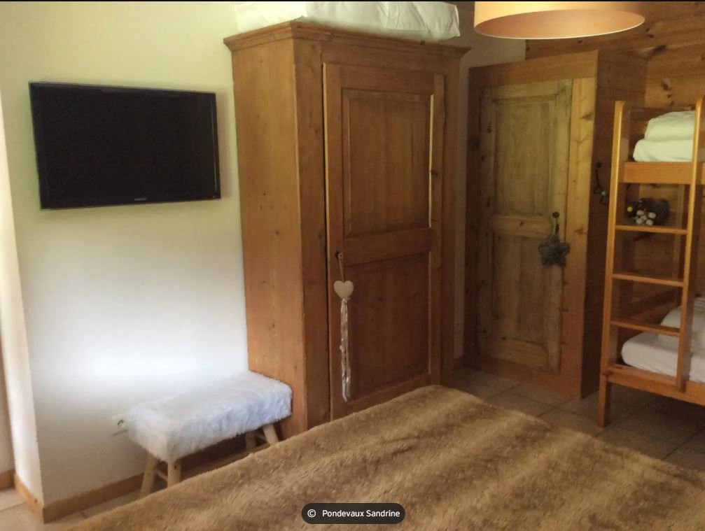 CHAMBRE : avec un grand lit 160×200 et un 2 lits superposés, fenêtre donnant sur terrasse Sud.