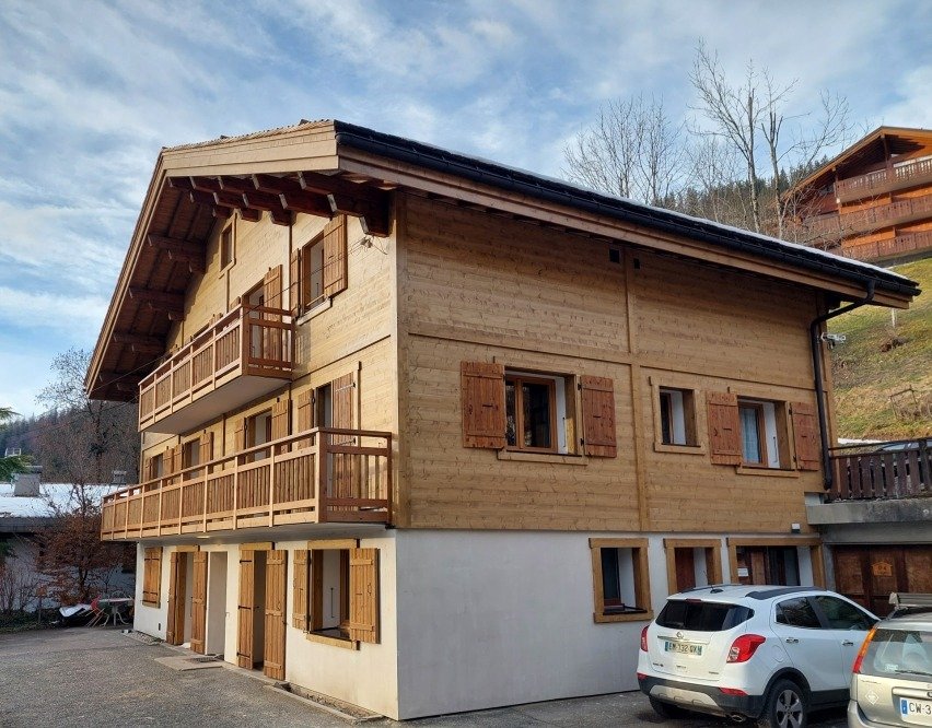 Au premier étage d’une copropriété de 6 appartements, versant sud plein soleil, face aux pistes du Bossonnet (400m) .Belle vue sur le village, le plateau de Beauregard, la Chaîne des Aravis.