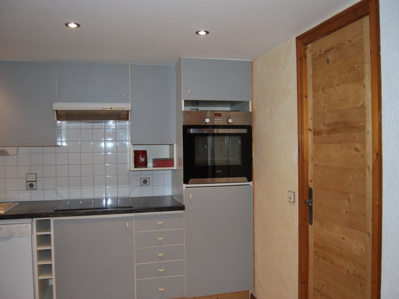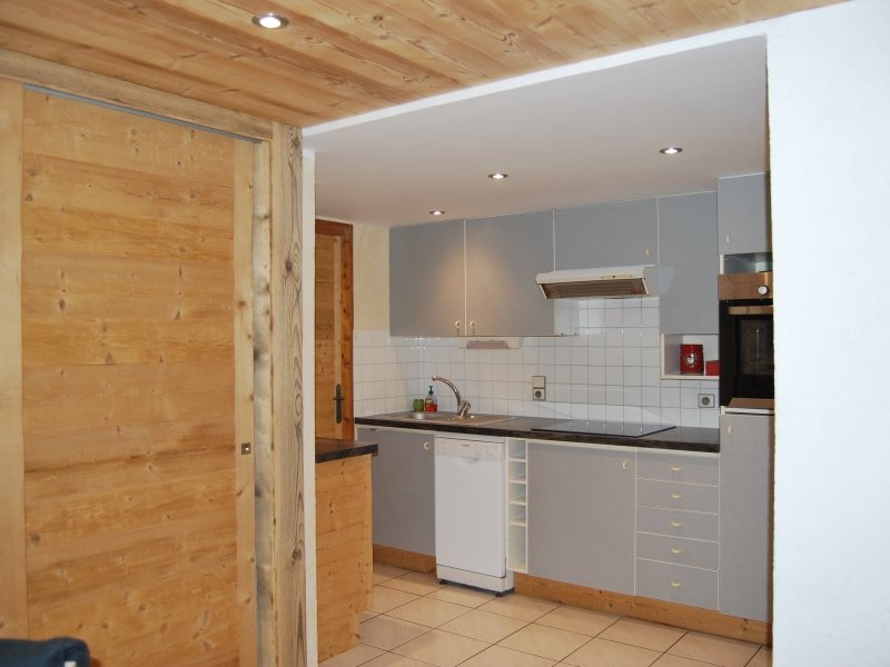 Entrée de plain-pied dans le séjour cuisine. SÉJOUR CUISINE (20m²) : coin cuisine, évier eau chaude et froide, table de cuisson 3 feux gaz + une plaque électrique, four électrique, frigo, lave-vaisselle, micro-ondes, appareil raclette-crêpes + tout le nécessaire en batterie de cuisine et vaisselle, grill-pain et bouilloire électrique. Produits ménagers fournis.