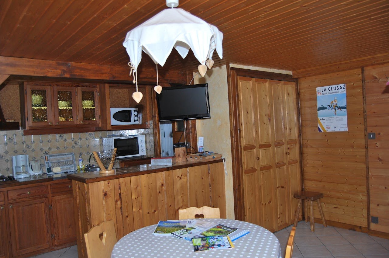 Studio 22 m² au rez-de-chaussée d’un chalet comportant 6 appartements. Situé à 1.9 km du centre village, en bordure de la Route des Confins (lac d’altitude et pêche – départs de nombreuses randonnées pédestres – ski de fond – golf et mini golf – poney …), au lieu-dit Le Var, de la piste de liaison Balme-Bossonnet. Vue sur la chaîne des Aravis et le massif de Balme. Parking sur le côté du chalet.